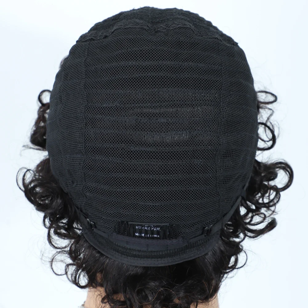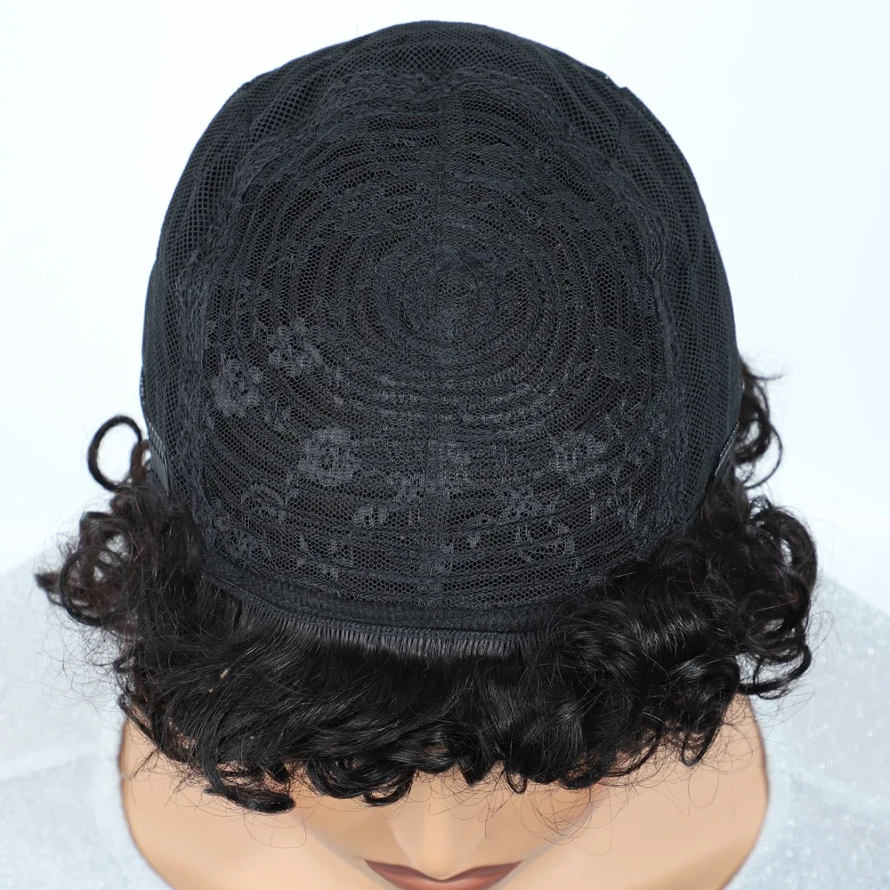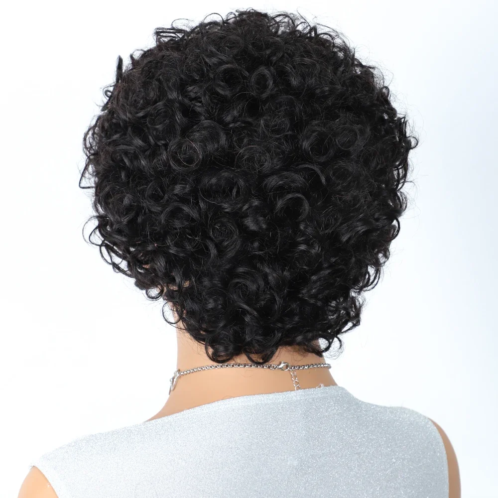 Brazilian Short Bob Pixie Afro Kinky Curly Wigs With Bangs For Black Women Natural Brown 99J Full Machine Made Human Hair Wigs